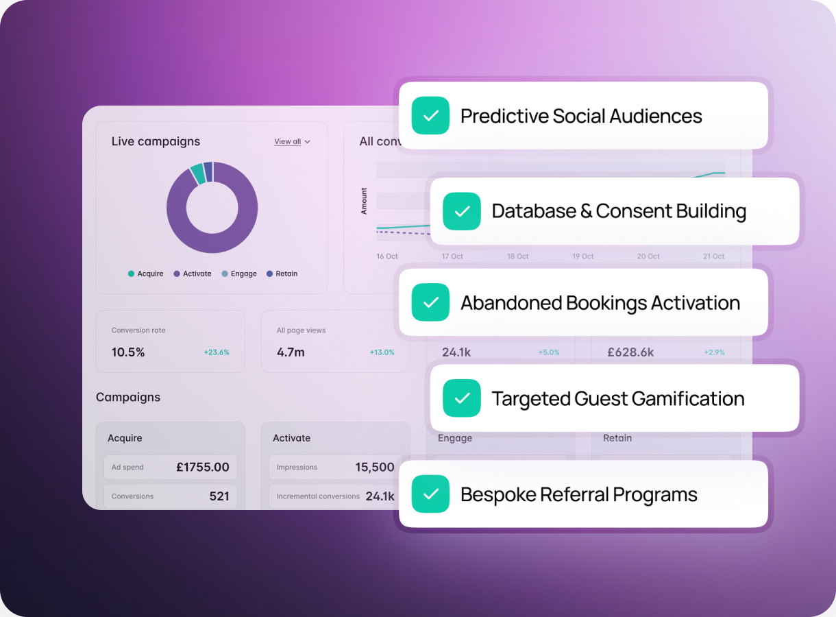 Optimise the guest journey & funnel end-to-end, boost awareness, conversion, retention and advocacy with new and smarter campaigns.